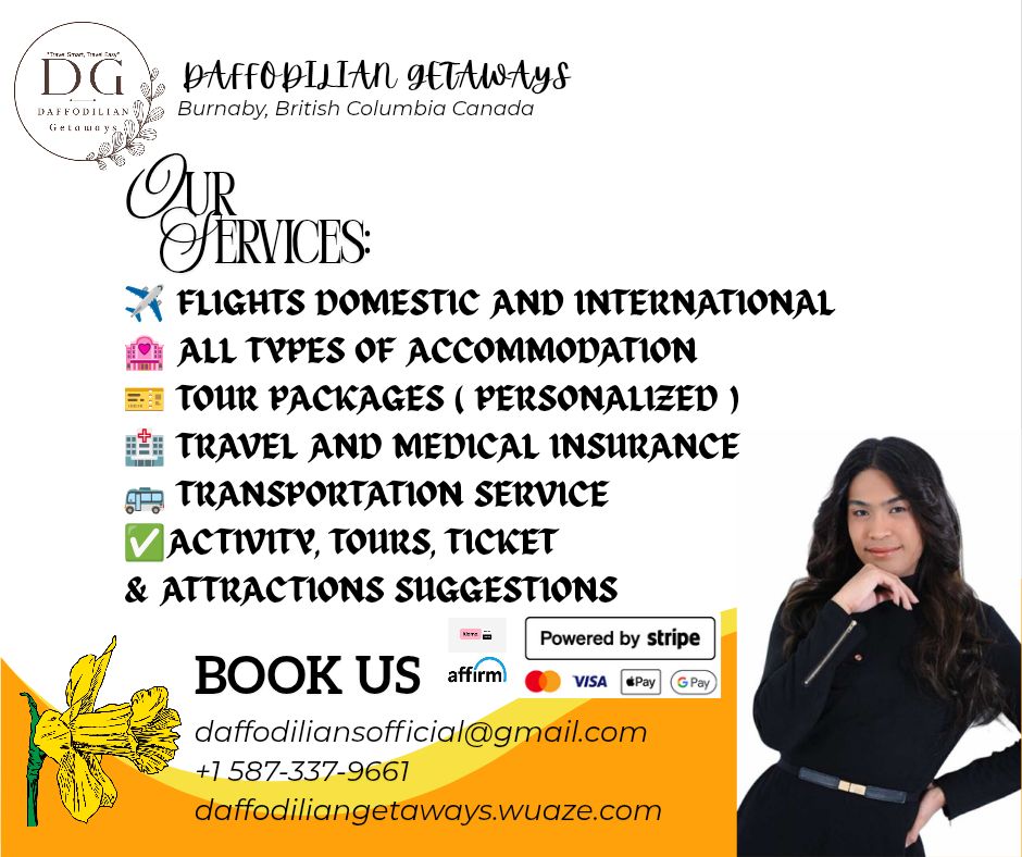 ✈️🚢 "At Daffodilian Getaways, we make your travel dreams stress-free and seamless. From booking flights to arranging unforgettable cruises, we handle every detail so you can sit back, relax, and enjoy the journey."